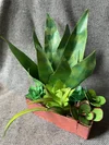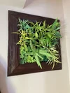 Paper mache frame. Cardboard, masking, tape, paper mache, acrylic paint.Plants. Cardboard, glue, paper mache, gesso, cardstock, acrylic paint, floral wire.